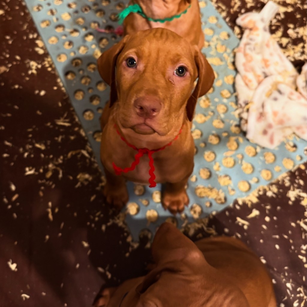 We brought our little dude home on February 9th, 2025, all the way from Oregon. The night before was the big reveal – the moment we finally found out which puppy would be ours. We were secretly rooting for either Mr. Red or Miss Pink. In the end, we got to choose from three boys, including Mr. Red, based on temperament testing and the personality traits we were looking for. The moment we saw Mr. Red, we just knew – he was the one.